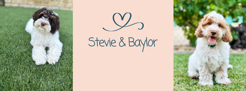 Australian Labradoodles were bred to be service dogs in Australia (there is no Shepard in them) and known for their consistent soft hypoallergenic coats. They make amazing therapy dogs suitable for all families which is why we adore them just as much as our Goldendoodles and Bernedoodles. Stevie is our 18lb. little lap dog she follows us everywhere like a little shadow, and just wants to give you kisses all day long. Baylor is our adorable Red Carmel Parti Roan Australian Labradoodle. He is the perfect stud for Stevie, with his structure, his sweet disposition and charm, they are going to have incredible pups with the most gentle temperaments.